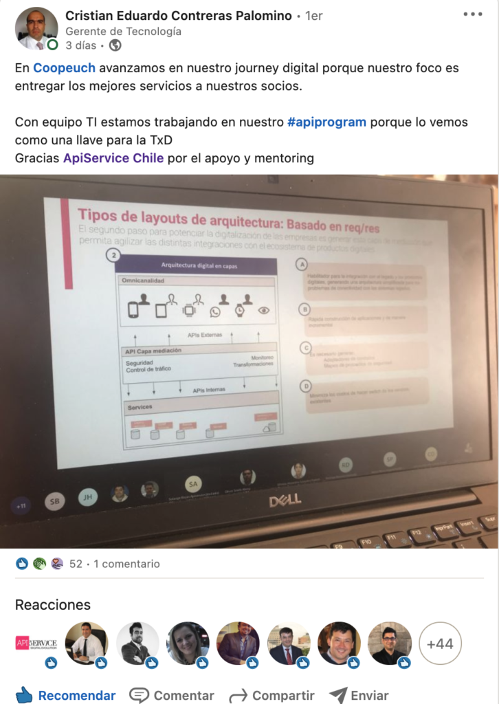 Con una gran participación y entusiasmo hemos realizado el taller ” Introducción API Program” con nuestro cliente COOPEUCH.